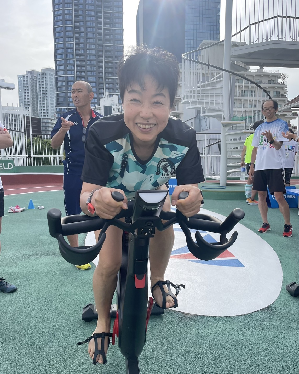 通常のトライアスロン大会では3種目を約3時間で行うところ、「健康ゆるゆるトライアスロン」では自分のペースで3種目の動きを活かした運動を連続して行います。自分のペースでトライアスロンを楽しんでほしいという思いで「ゆるゆるトライアスロン」と表現しています。