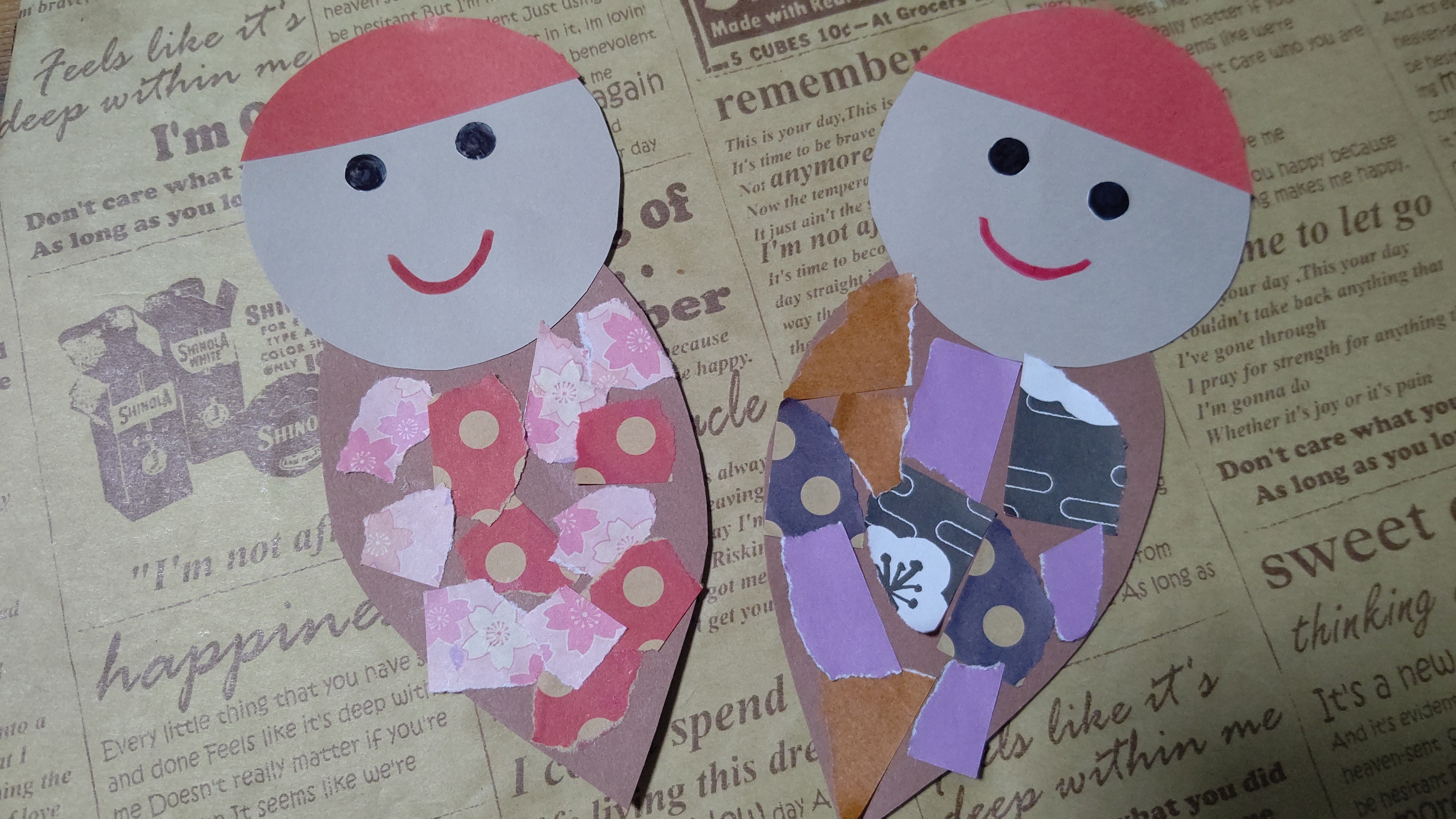 秋を感じるミノムシの製作、指先を使い折り紙をちぎりながらペタペタ貼ったり!