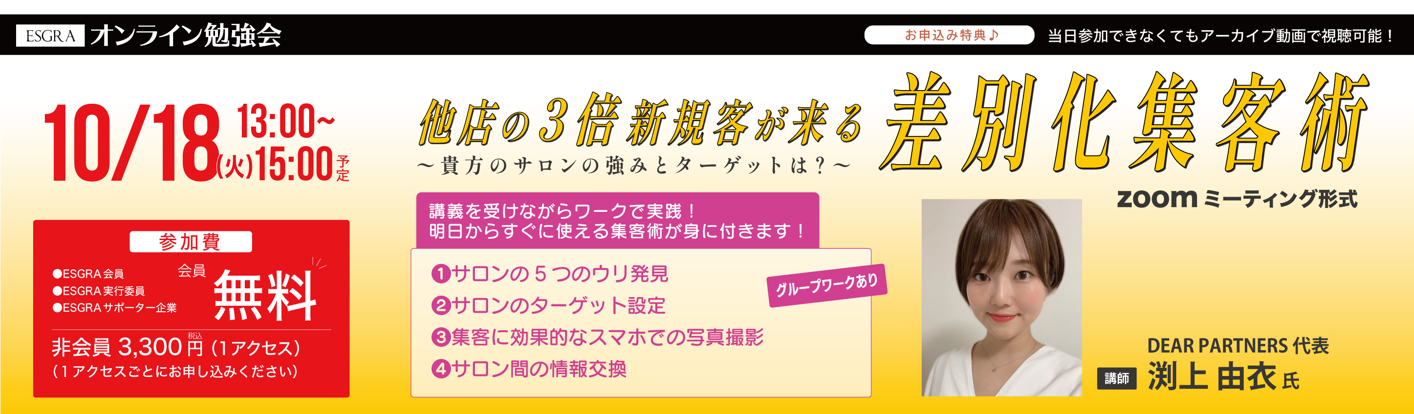 お申込みのキャンセル・変更は当日10時までに事務局(info@esgra.jp)まで必ずご連絡ください。受付