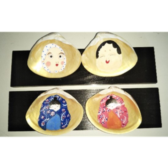 今回はすでに金が塗られた蛤貝に好きな絵柄を選んで写し、色を付けてオリジナルの貝アート作品を作ります。