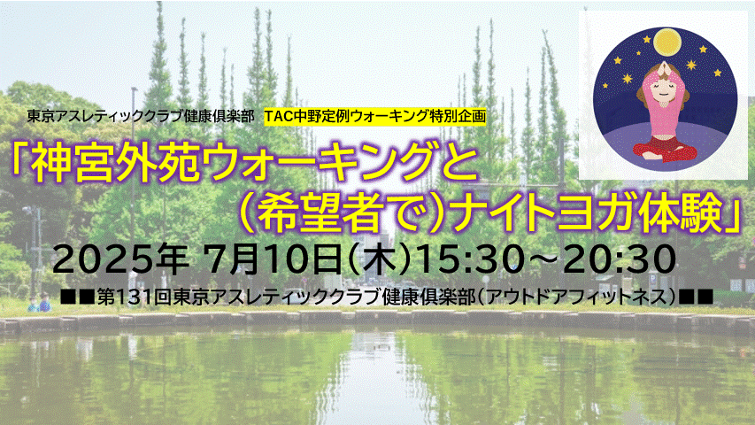 『神宮外苑ウォーキングと(希望者で)ナイトヨガ体験』