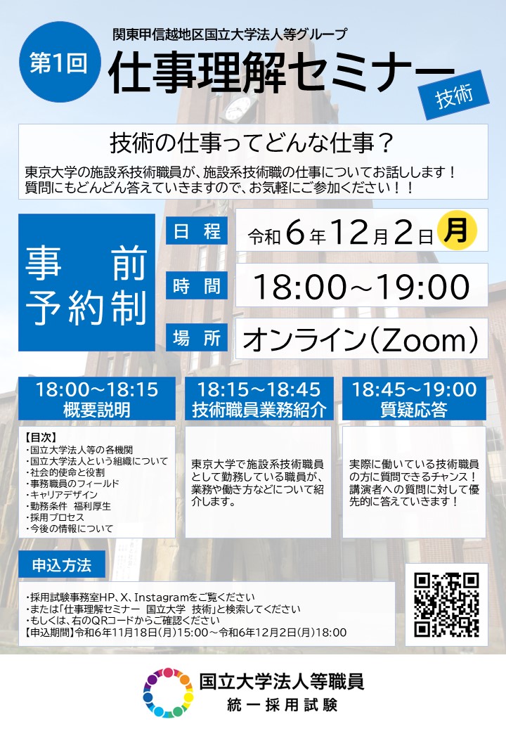 12月2日(月)に行われた「仕事理解セミナー【技術】①」のアーカイブ配信の申込ページです。