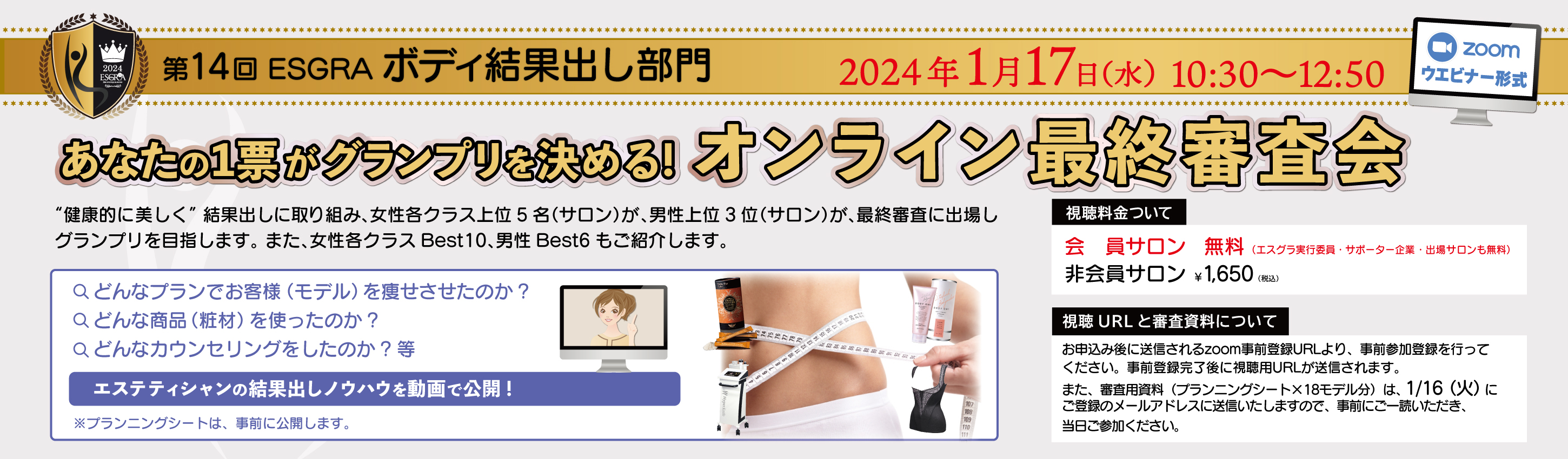 【第14回ESGRAボディ結果出し部門】あなたの1票がグランプリを決める!オンライン最終審査会