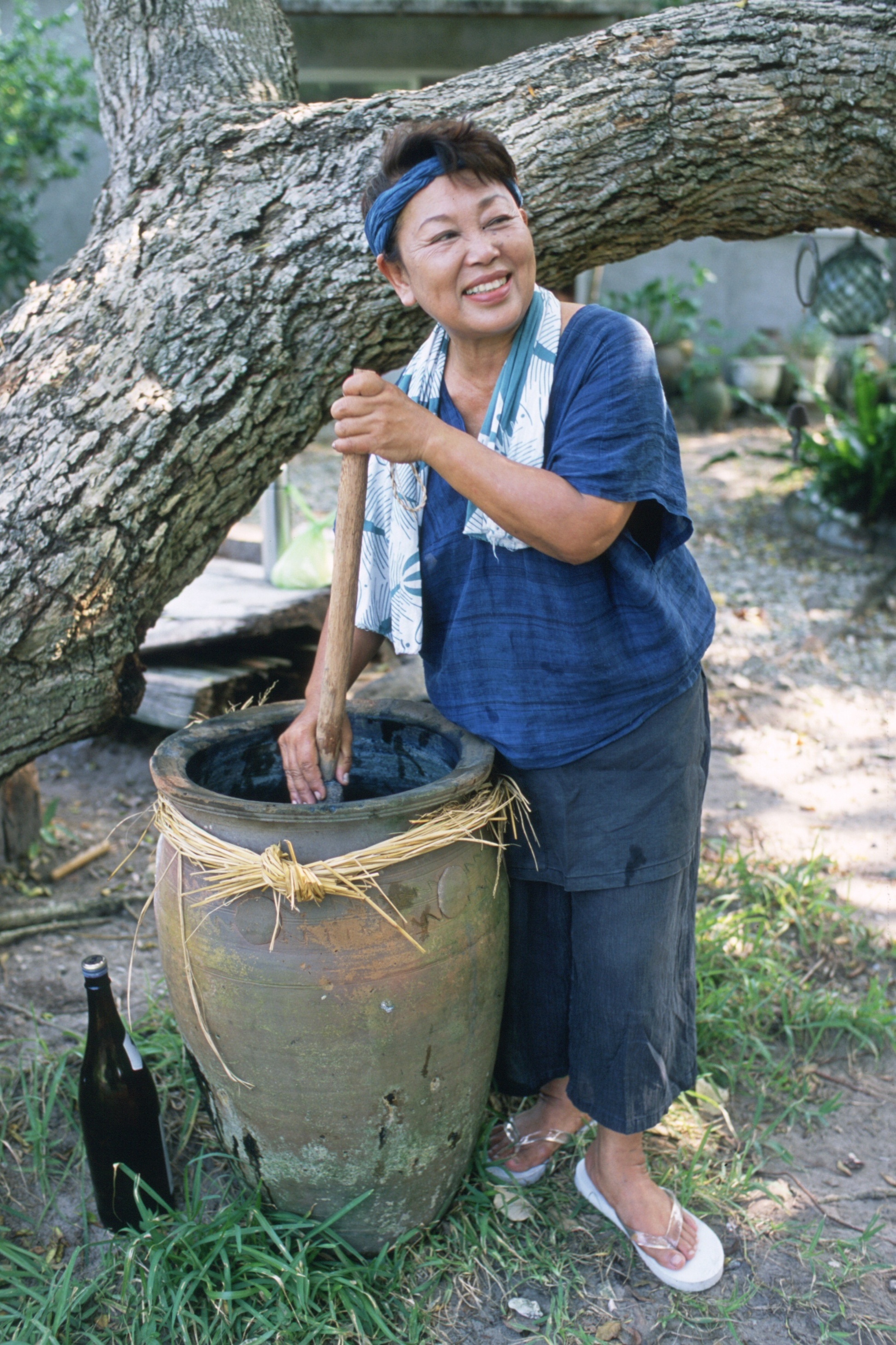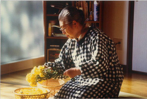 1938年沖縄竹富島生まれ。生きている生命(芭蕉、蚕)から糸を紡ぎ出し、生きている生命(福木、藍、紅露)に秘められた色を誘い出し、太陽の巡りに寄り添い、月の満ち欠けに波長を合わせながら仕事を続けている。