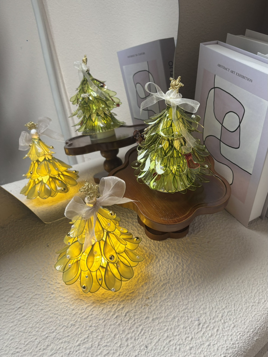 ツリー型のライトに、ワイヤーで形づくった葉っぱをつけていきます𓂃❇︎