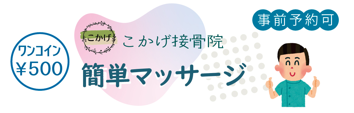 ❖ こかげ接骨院さまによる、15分程度の簡単なマッサージを500円にて受けられます。