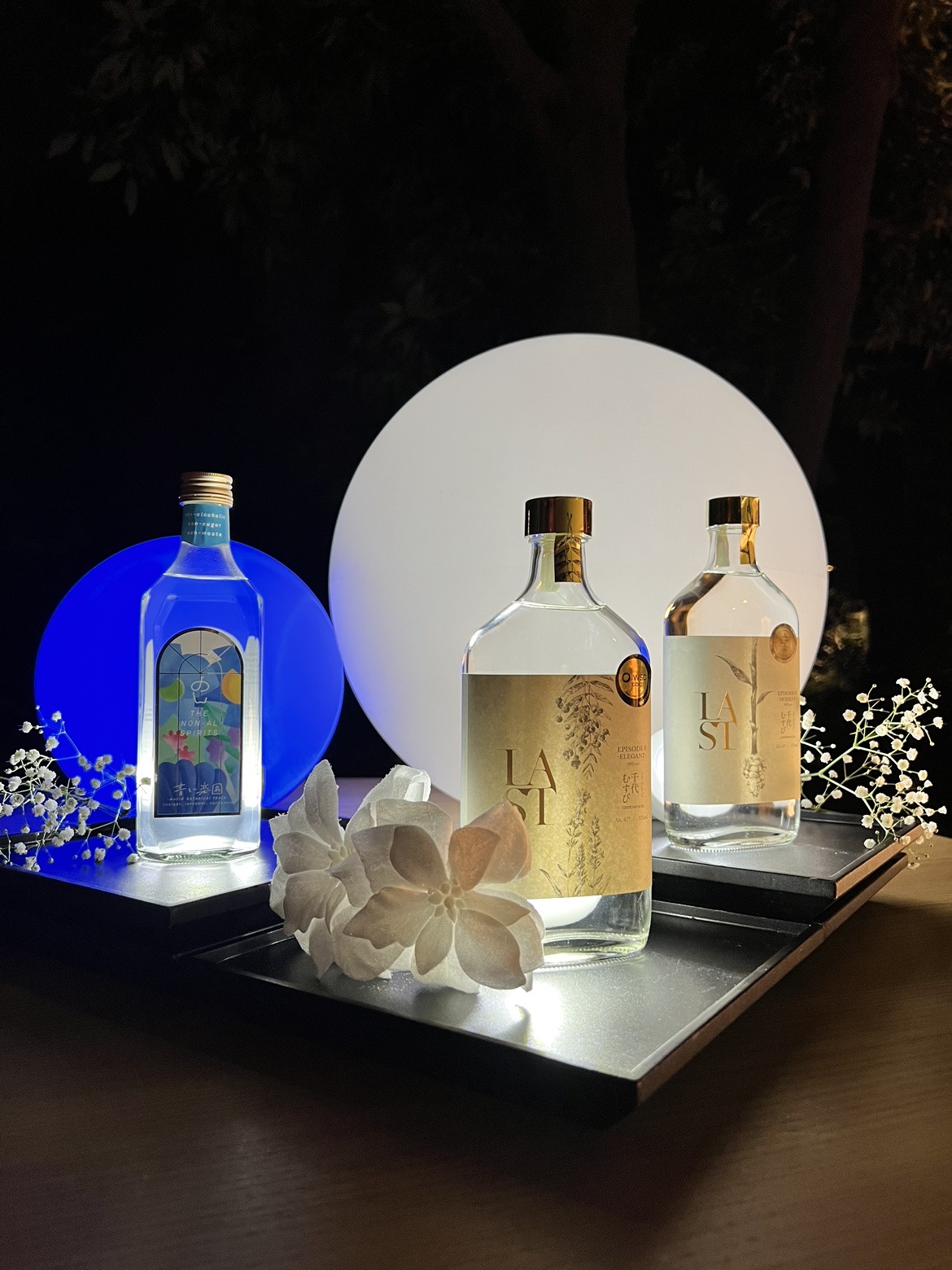庭園に美しいことの調べが響く中、エシカル・スピリッツ株式会社監修のオリジナルジンと、