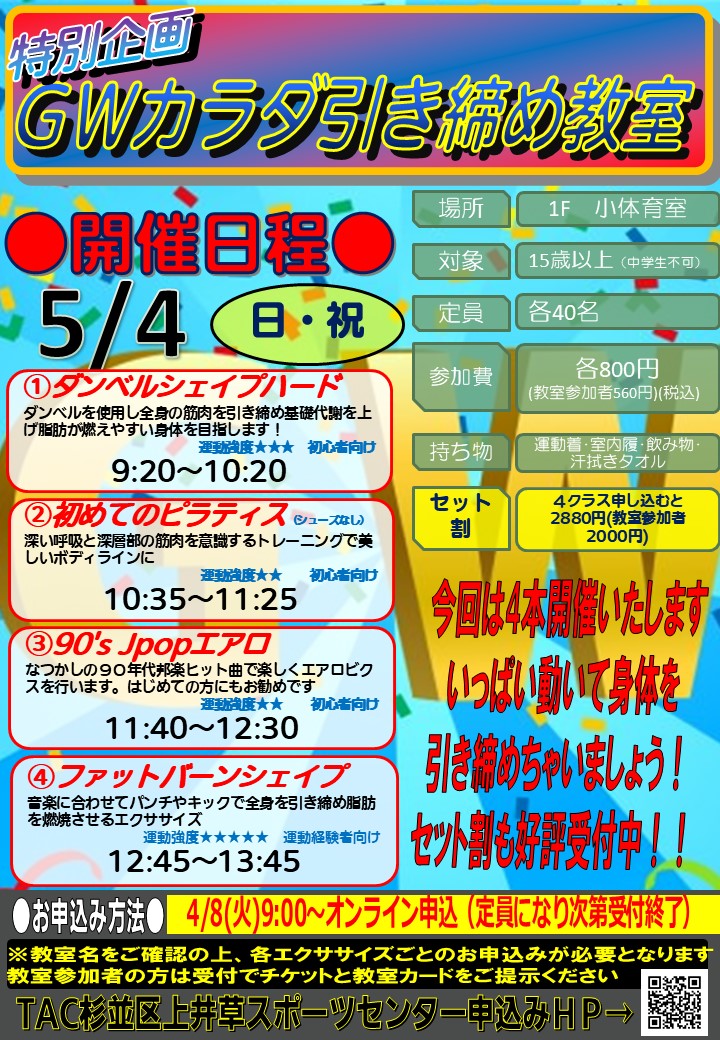 運動不足になった身体をエクササイズでシェイプアップしましょう!申し込みは終了しました