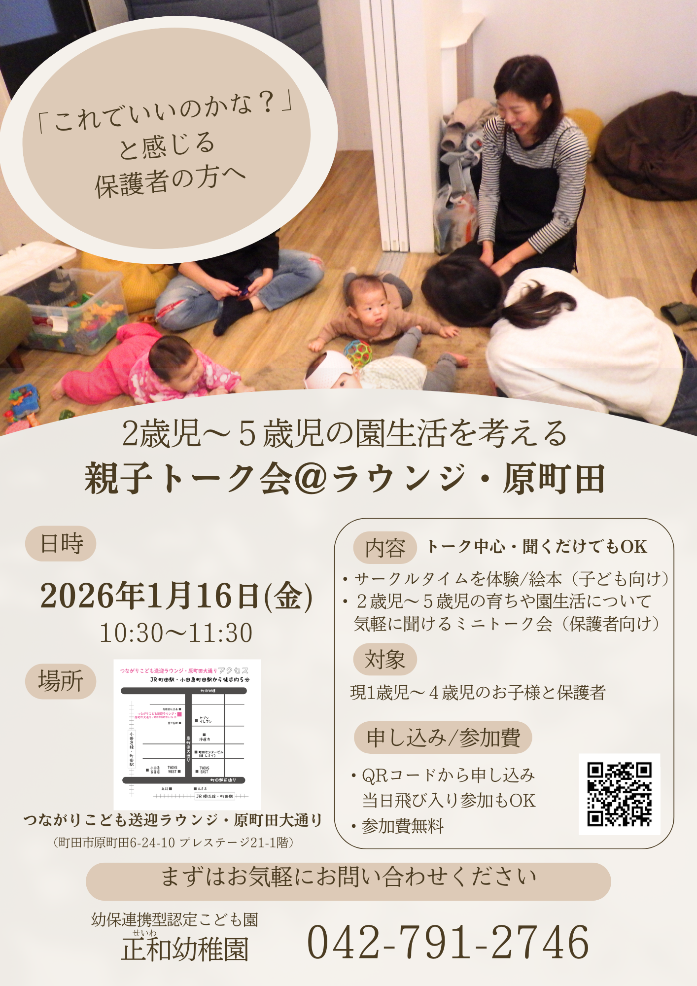 ・2歳児~5歳児の育ちや園生活について気軽に聞けるミニトーク会(保護者向け)