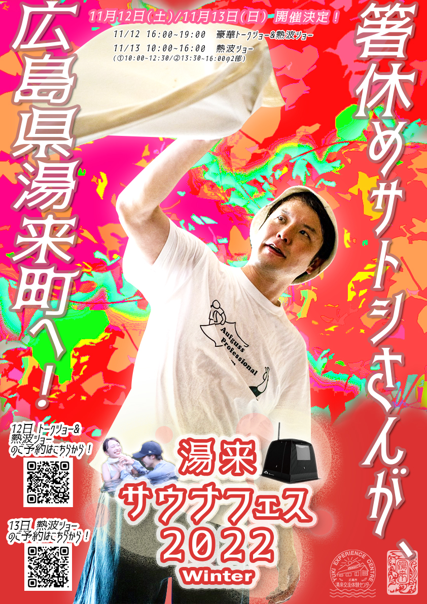 日本全国でいま大活躍中の熱波師、箸休めサトシさんがなんとこの湯来の地にやってくる!!