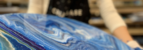 キャンパスを持って流し込んでいく作業を2人で行うので、いつもと違ったスリルを楽しんでいただけます。