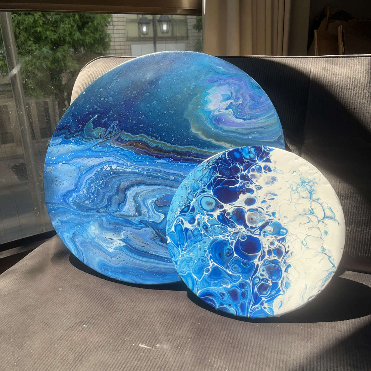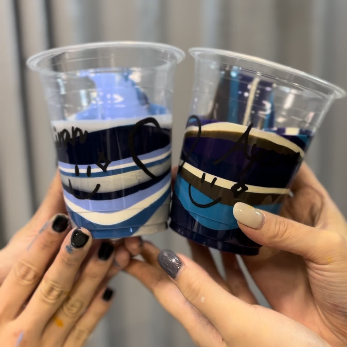 キャンバスに流し込むカラーを合わせていただいても良いですし、違うカラーをお互いに流し込んでいくのもOK◎