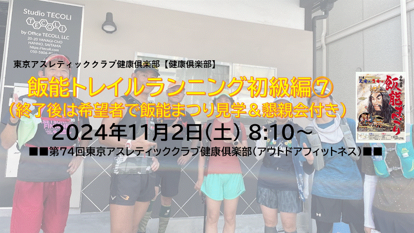 ■■■TAC健康俱楽部イベント 飯能トレイルランニング初級編⑦(終了後は希望者で飯能まつり見学&懇親会付き)■■■