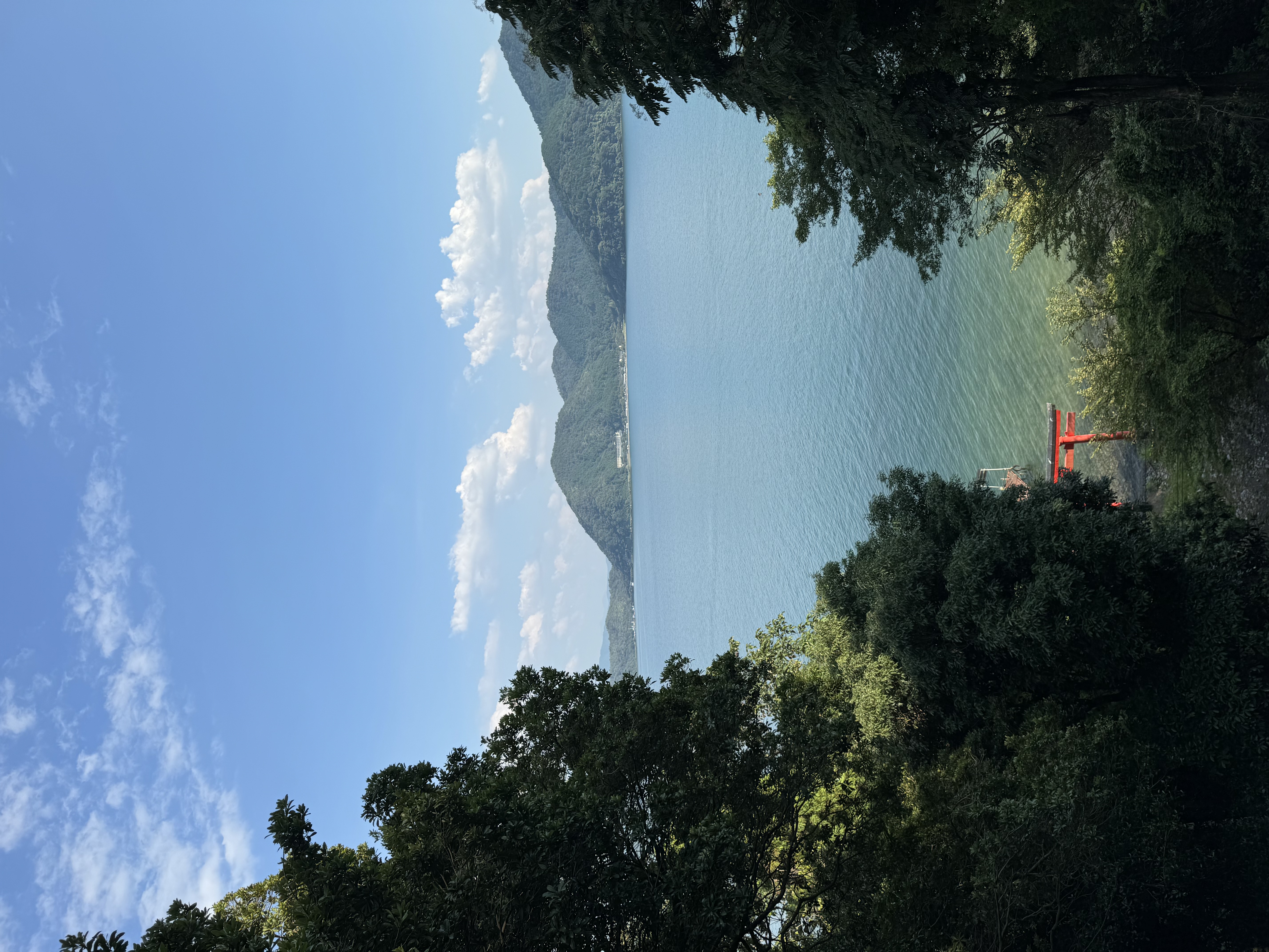 山神社にて、沖島と琵琶湖と繋がるmanaki。