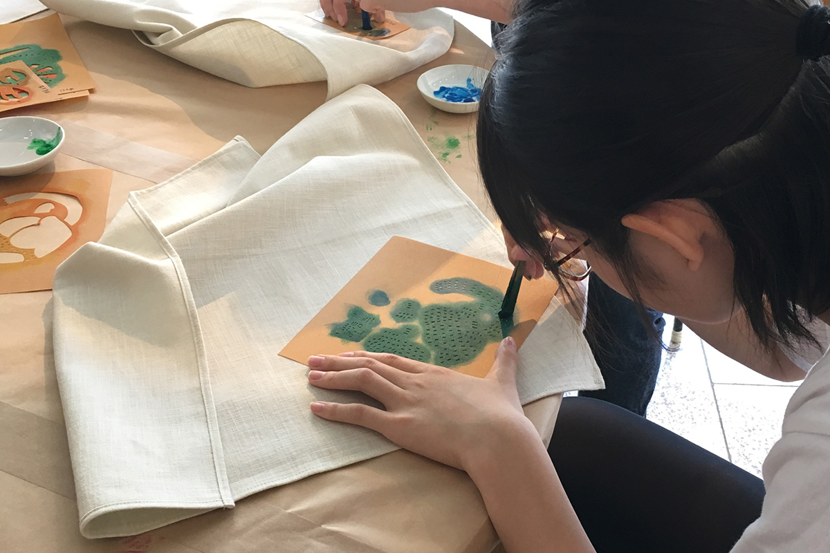 10/19にはむす美東京店で、kata kataの松永武氏を講師にお迎えし、ふろしきの摺染めにチャレンジしていただきます。