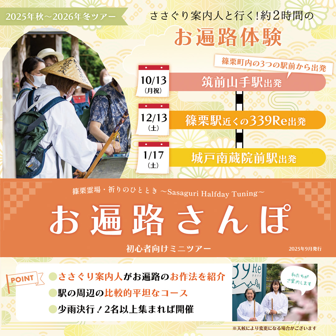 篠栗町観光交流拠点339Re集合(JR篠栗駅近くにあります)9時40分受付開始