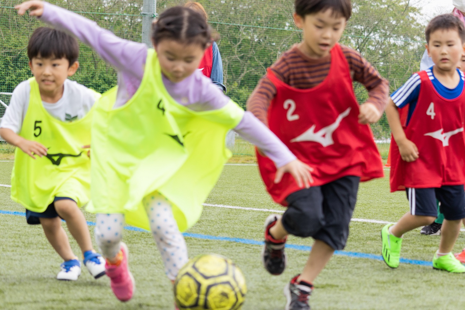 年中クラスと年長クラスに分かれているので同じ年代の子供達と一緒にボールを蹴ることができます。