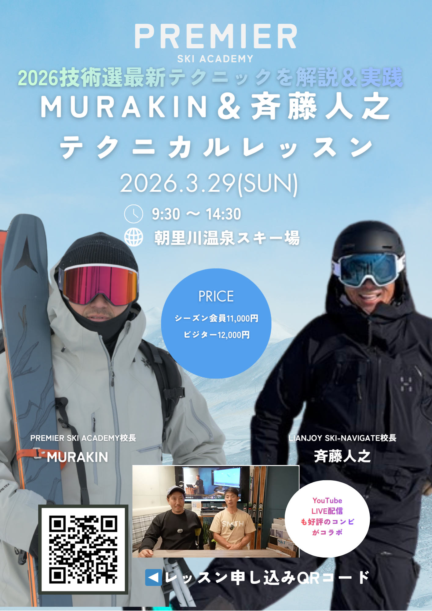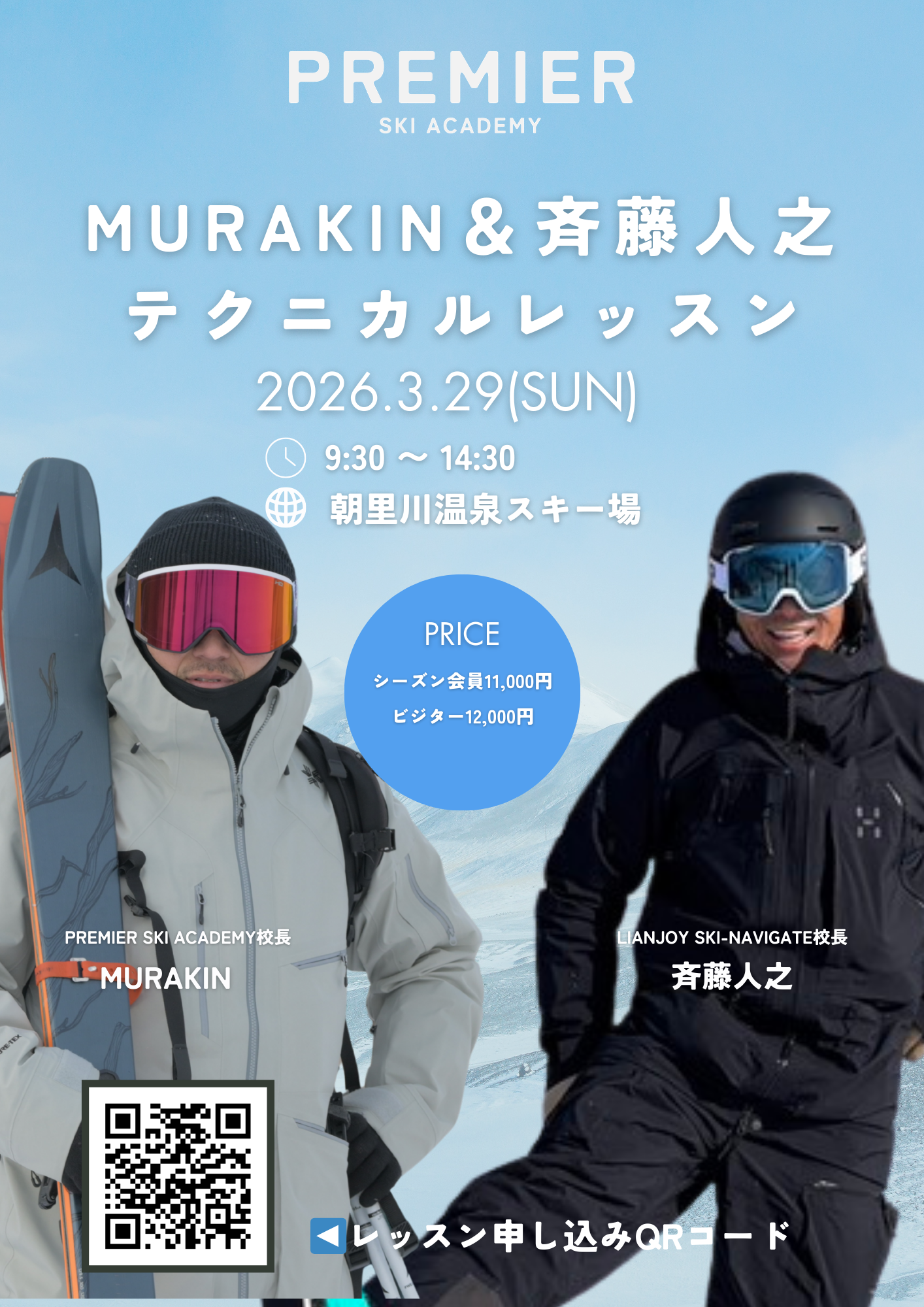 ■内容:MURAKINと斉藤人之による技術選でみられた最新テクニックを解説しながらレベルアップを目指すコラボレッスン