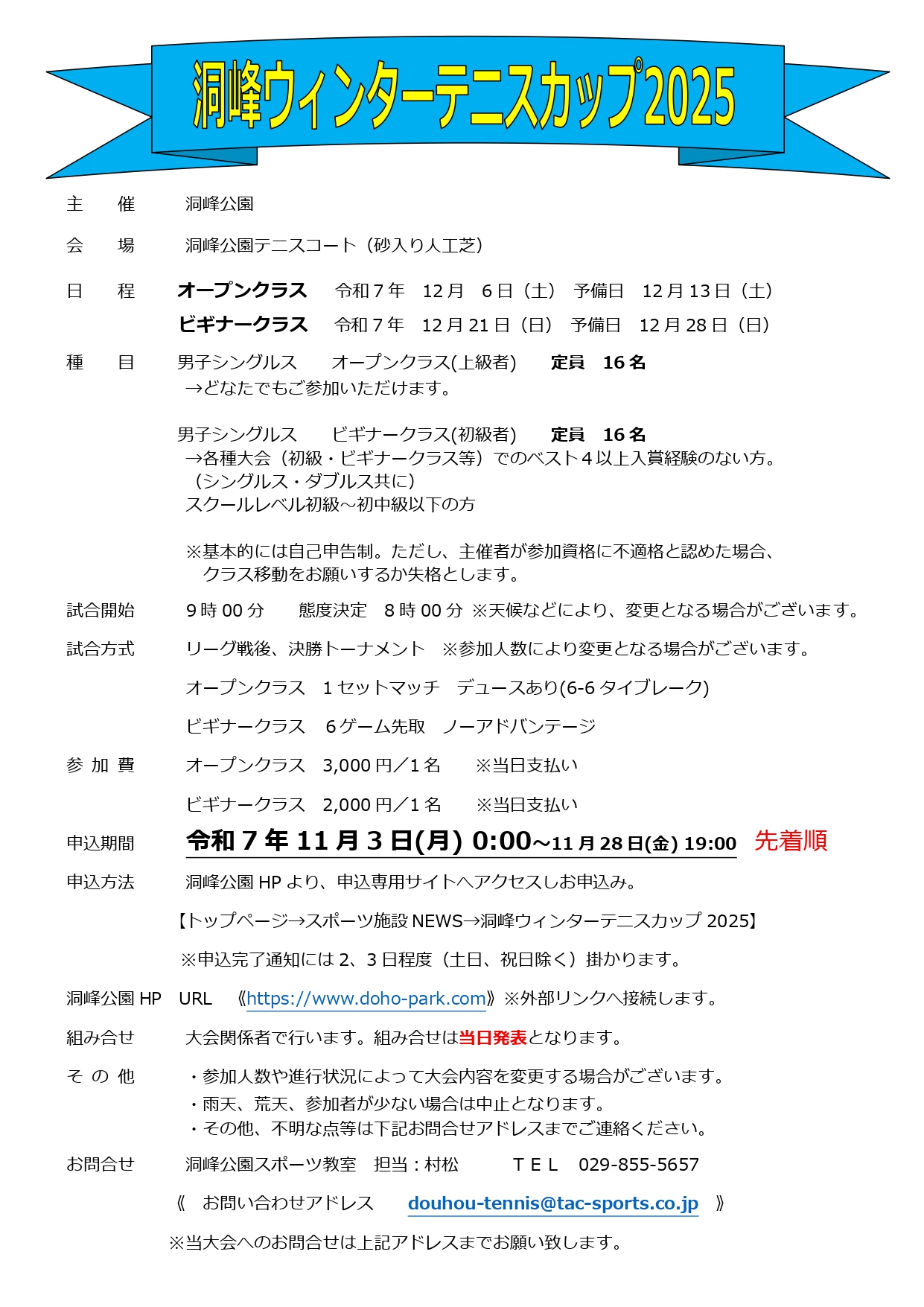 【トップページ→スポーツ施設NEWS→洞峰ウィンターテニスカップ2025】