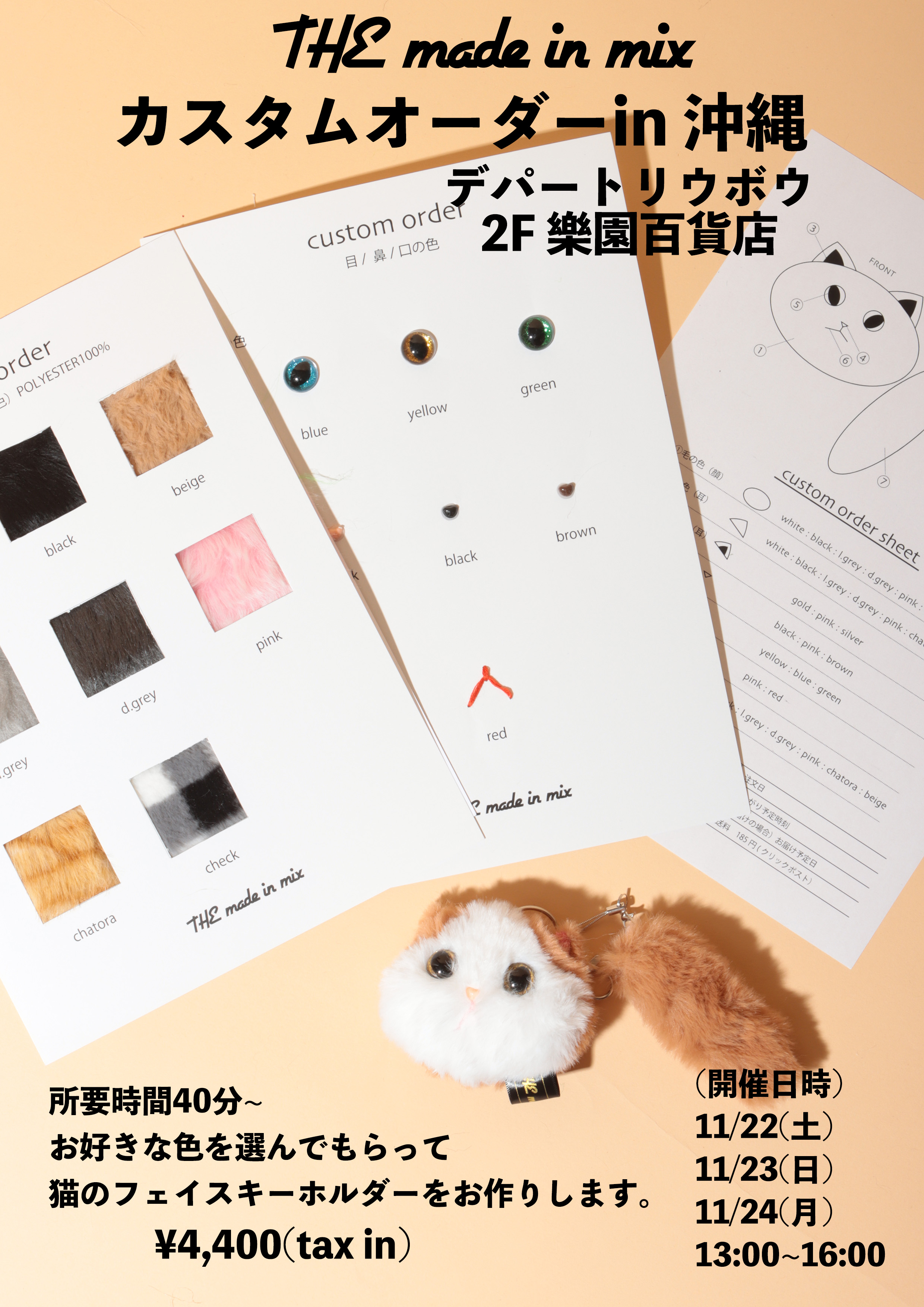 参加者の方にお好きなパーツやファーカラーをお選びいただき、