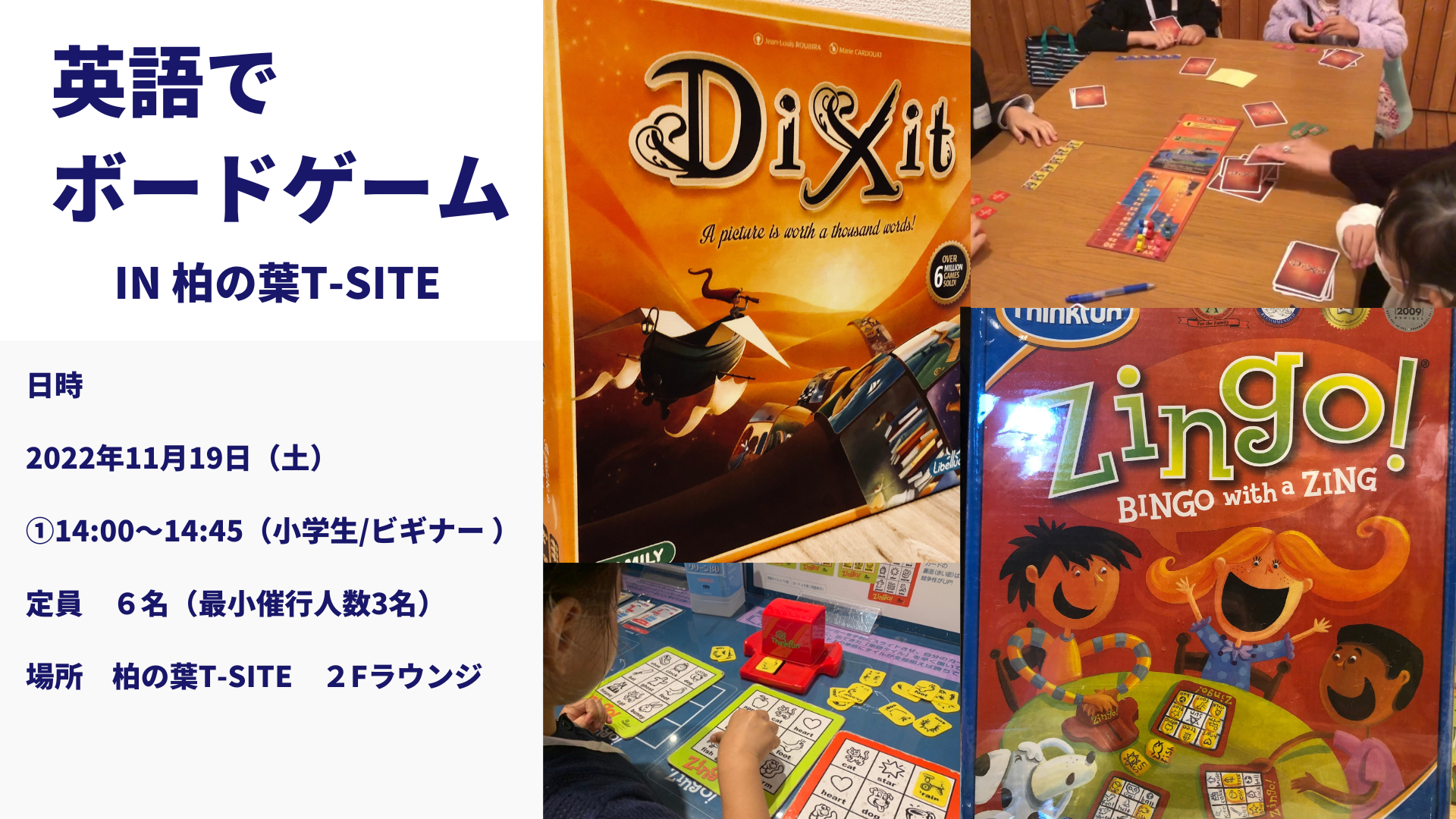 ボードゲームをしながら、参加者や 講師と英語に触れ一緒に楽しもう!