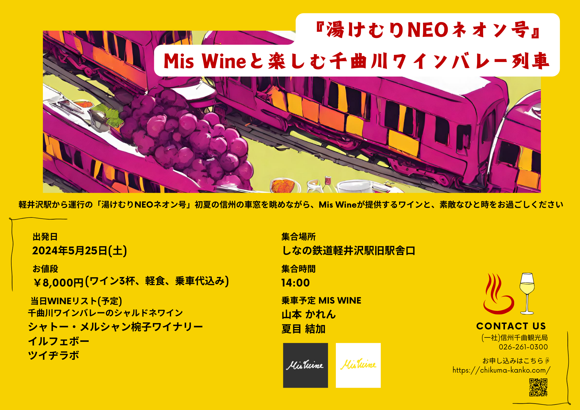 5月は『Mis Wineと楽しむ。千曲川ワインバレー列車』を運行いたします!
