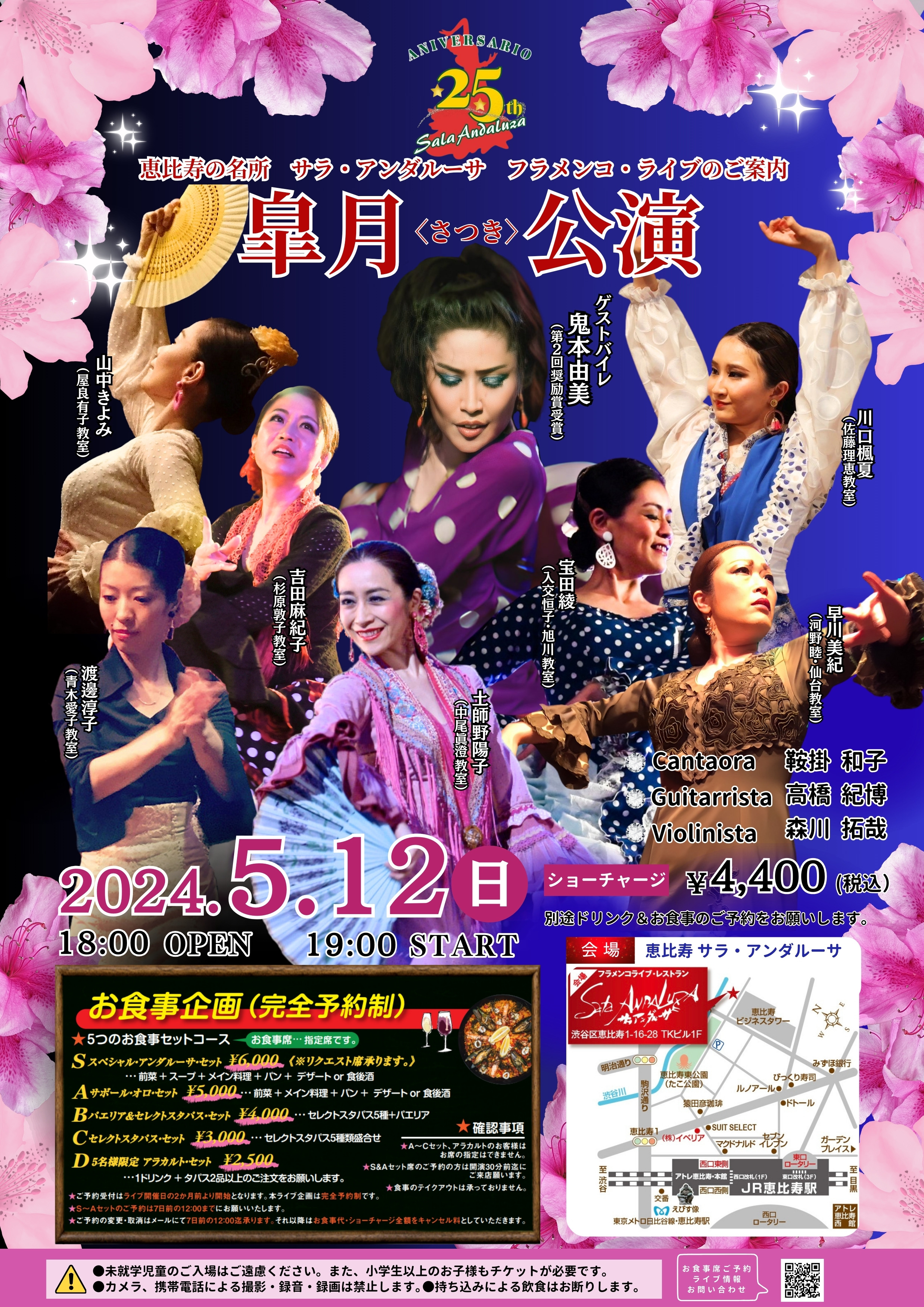 お食事席のご予約をお願いしております。お食事料金には、チケット料金(ショーチャージ)は含まれておりません。