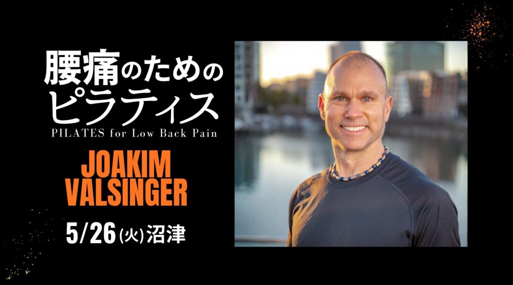 5/26(火)沼津Joakim Valsingerによる特別ワークショップ開催!「腰痛のためのピラティス~Pilates for Low Back Pain ~」5月26日(火) 14:00~17:00(まとまった休憩はなし)