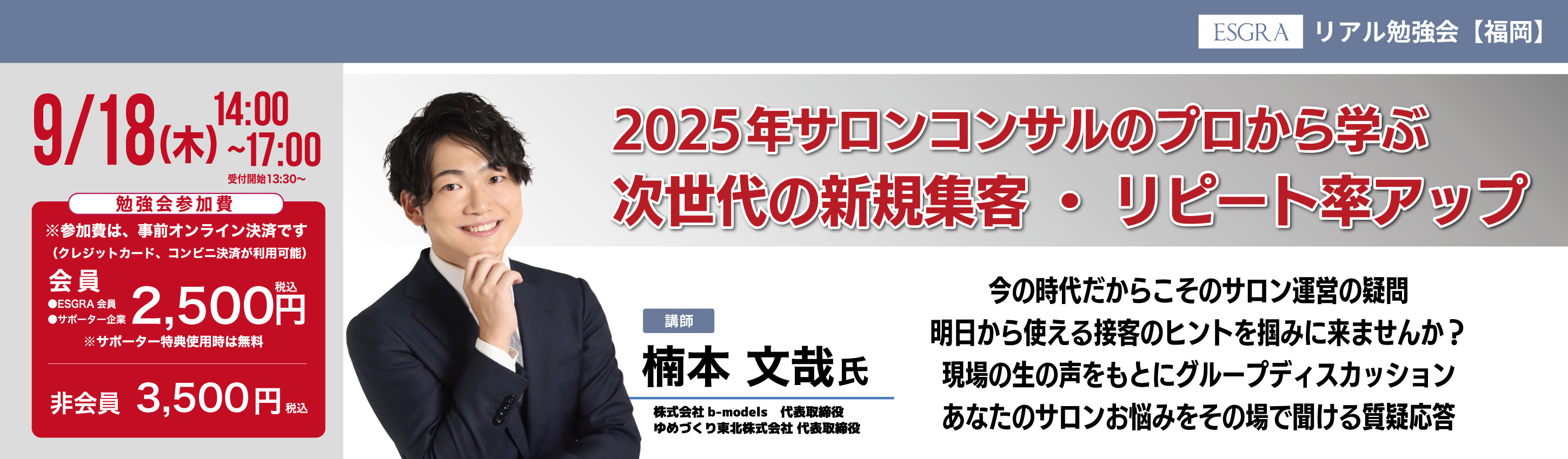 ESGRA会員:2,500円(税込)ESGRA実行委員:2,500円(税込)