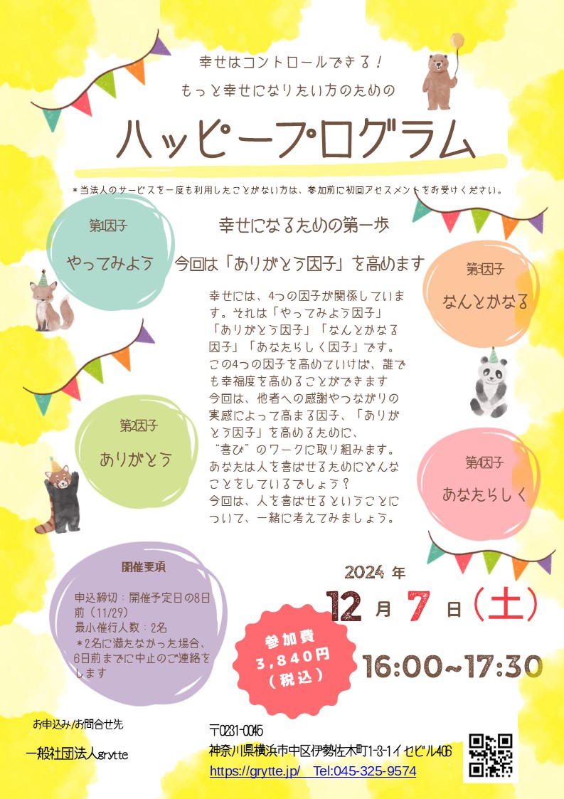 ハッピープログラムは、全16回のプログラムとなっております。