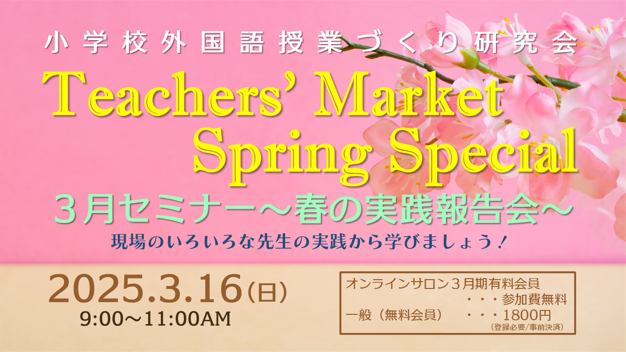 ・本研究会の3月期有料会員(オンラインサロン)の方は、無料でご参加できます。有料会員のプランは、Aプラン(継続会員月額¥980)とBプラン(当月のみ会員¥1480)があります。本講座を有料会員ステータスでお申し込みの方は、こちらの申込とは別に本研究会の有料会員登録・決済の手続きが必要となります。小学校外国語授業づくり研究会オンラインサロン https://gaikokugolesson.net/ のトップページから、マイページにログインし、プラン選択へとお進みください。