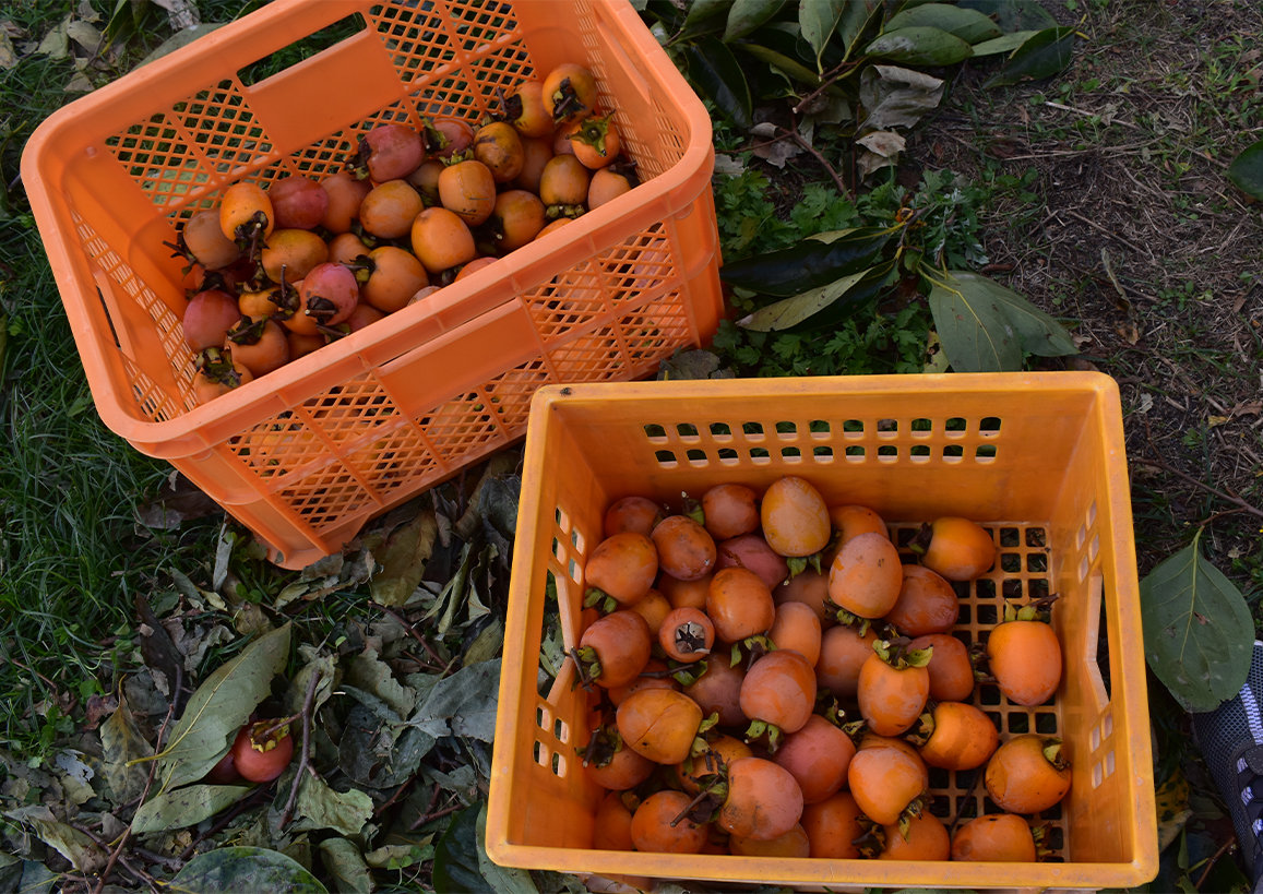 地元の農家さん宅で柿捥ぎ体験、昼食は各自とっていただき、午後から湯来交流体験センターで干し柿づくりの体験です。2連お持帰りいただきます。残った柿は湯来名産「巻き柿」用に使用させていただきますのでご了承ください。