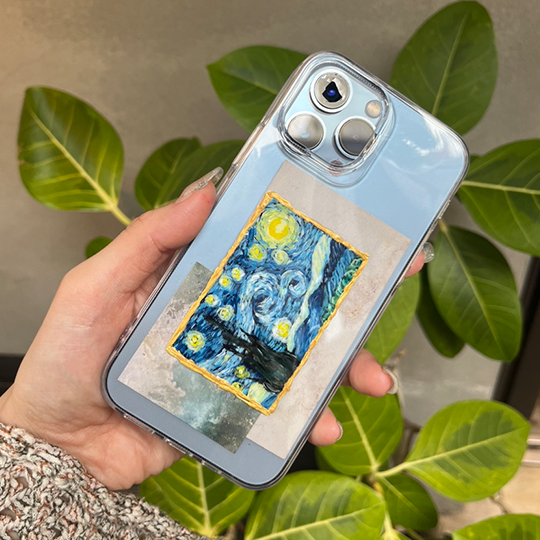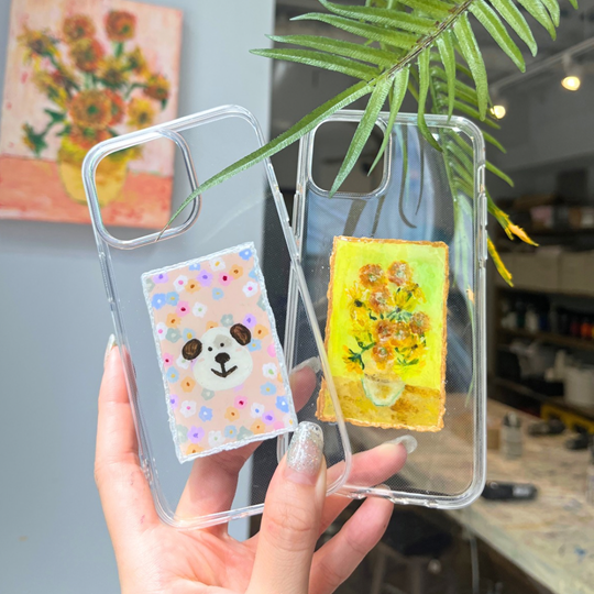 完成後レジンコーティングをしますので、透明感のあるケースを作成していただけます。