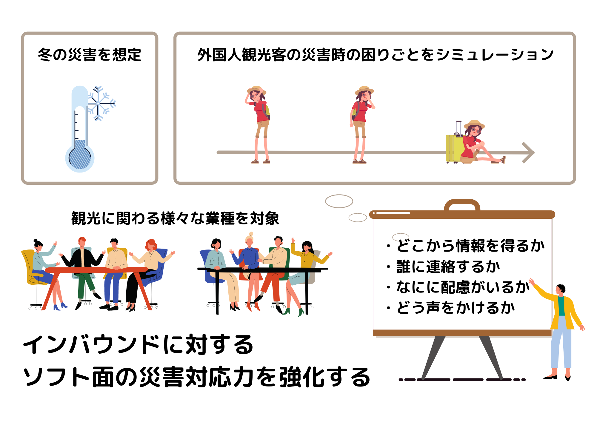 タイトル : 観光関係者向け・インバウンド防災シミュレーション・ワークショップサブタイトル: 「君ならどうする?」May I Help You?