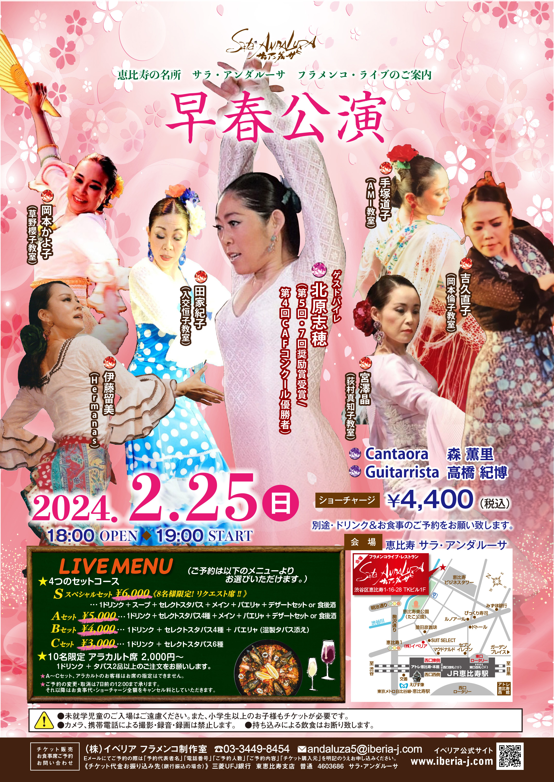 踊り手:伊藤留美(Hermanas)、岡本かよ子(草野櫻子教室)、田家紀子(入交恒子教室)、手塚道子(AMI教室)、宮澤晶 (荻村真知子教室)、吉久直子(岡本倫子教室)/ゲスト:北原志穂(第5回・7回奨励賞受賞/第4回CAFコンクール優勝者)ギター:高橋紀博