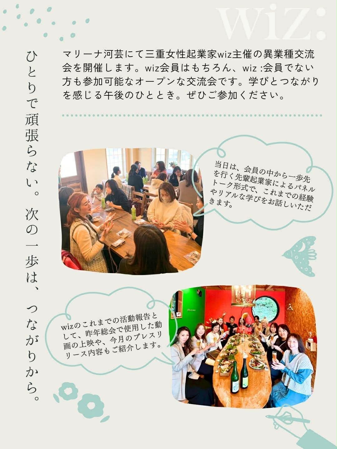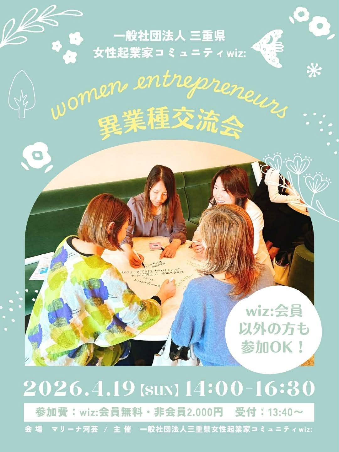 4月19日(日)14時~16時30分(予定):異業種交流会※一般参加可 基調講演テーマ/ちょっと先行く先輩のお話(マリーナ河芸)
