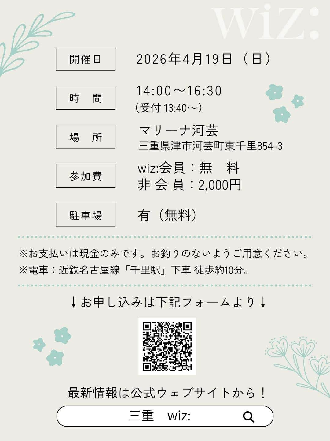 wiz会員さんはもちろんのことご参加お待ちしてますが、
