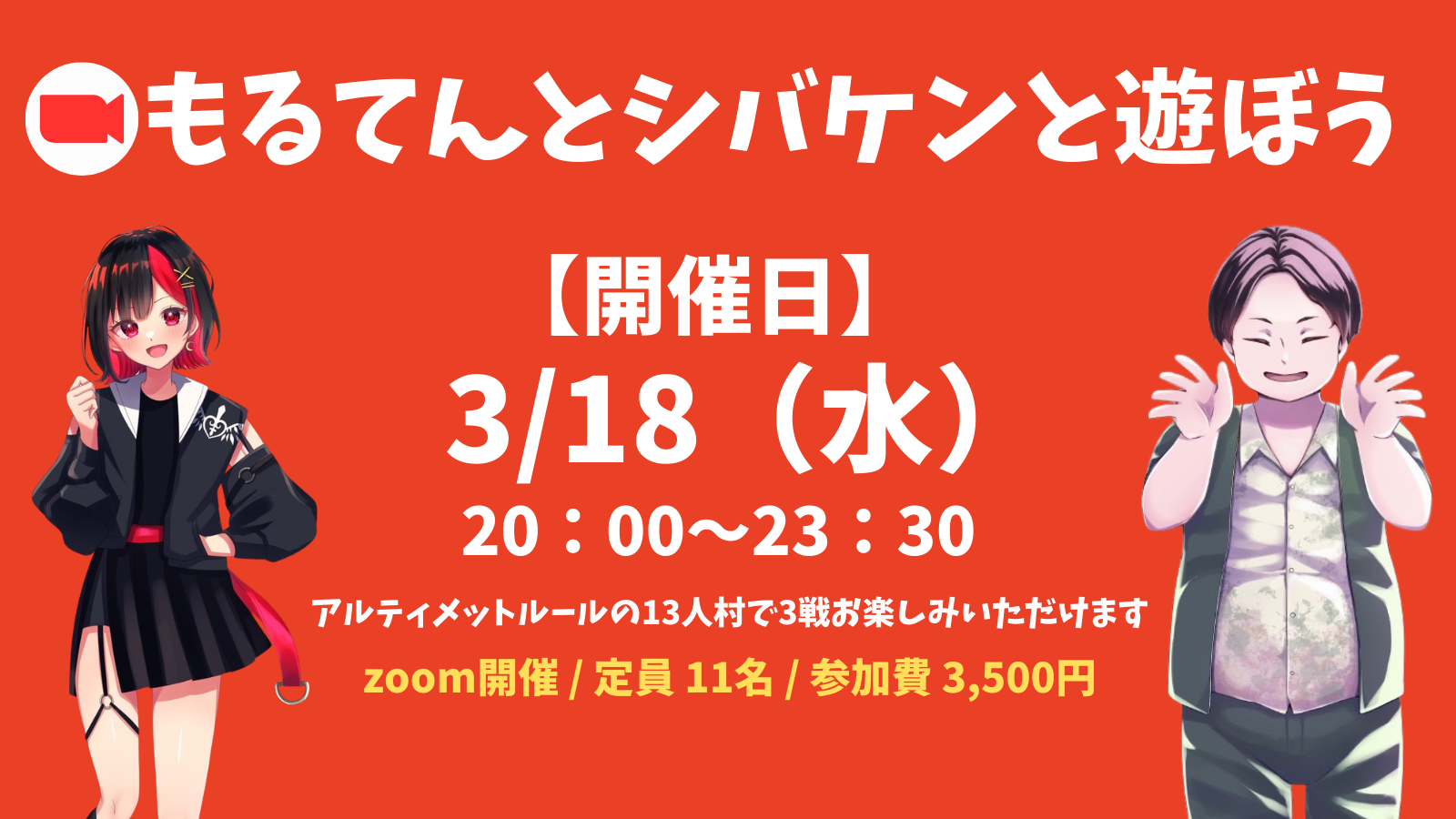 ガチ狼など、配信人狼で活躍中の【もるてんさんとシバケンさん】のZOOMゲストイベントにです!