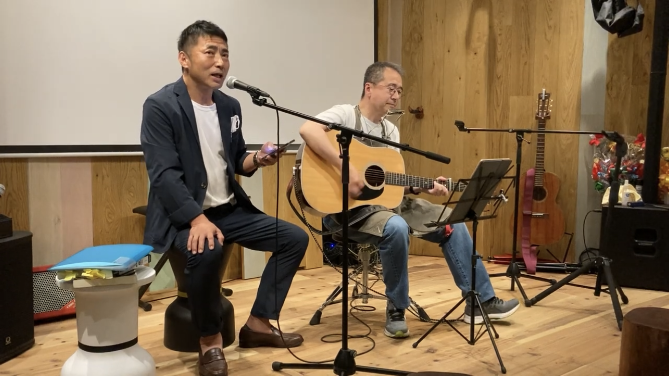 ステージに上がって、ご自身での弾き語りや大統領のギター伴奏で自慢の歌声をご披露いただけるコーナーです。