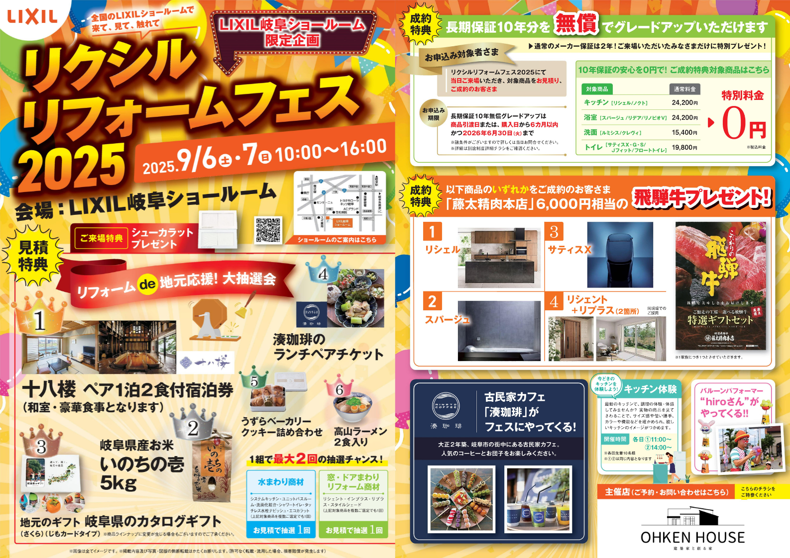 今年もリクシル岐阜ショールームにて、「リクシル リフォームフェス2025」が開催されます。