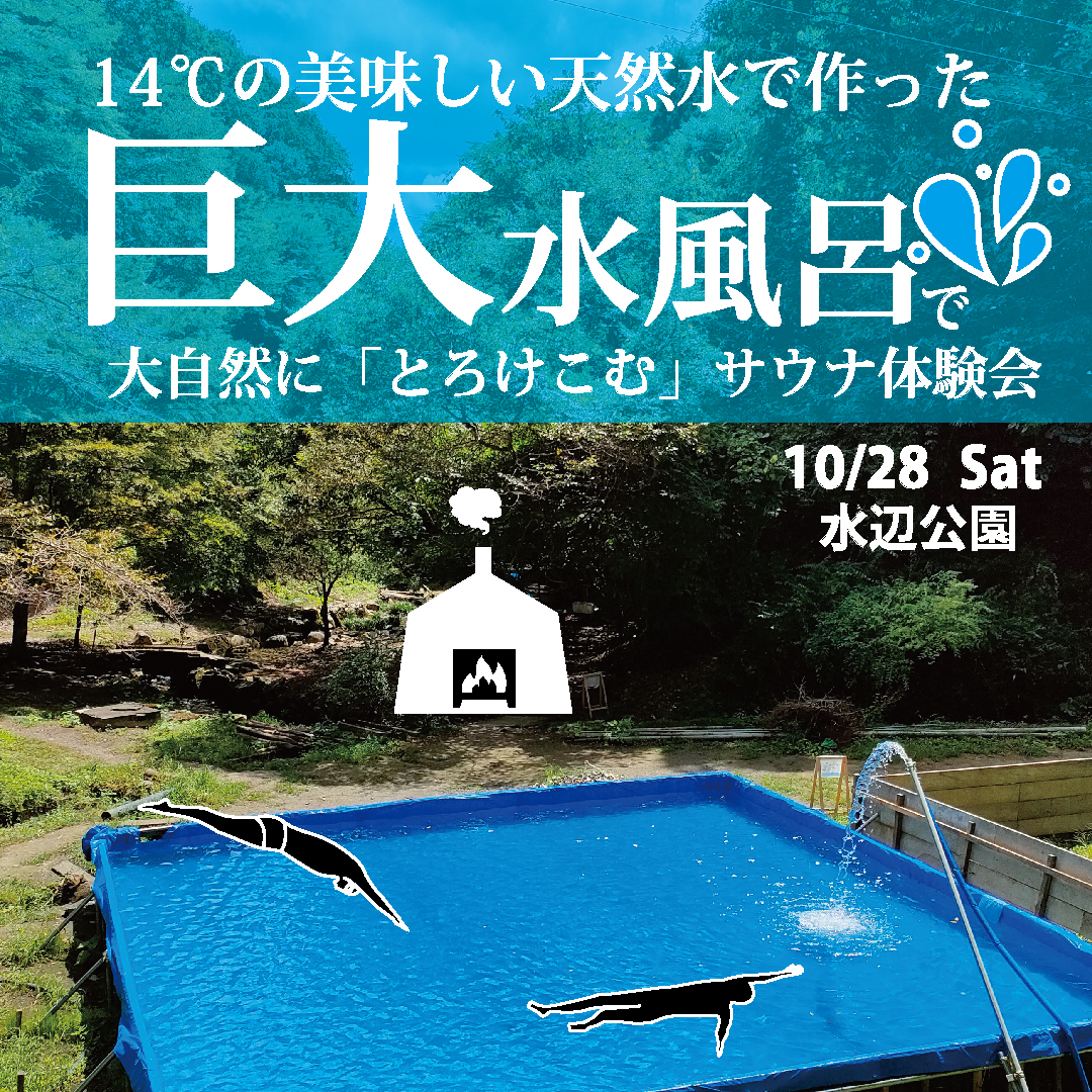 帝釈峡水辺公園に湧き出る美味しい天然水かけ流しの巨大水風呂を楽しむサウナイベントです。