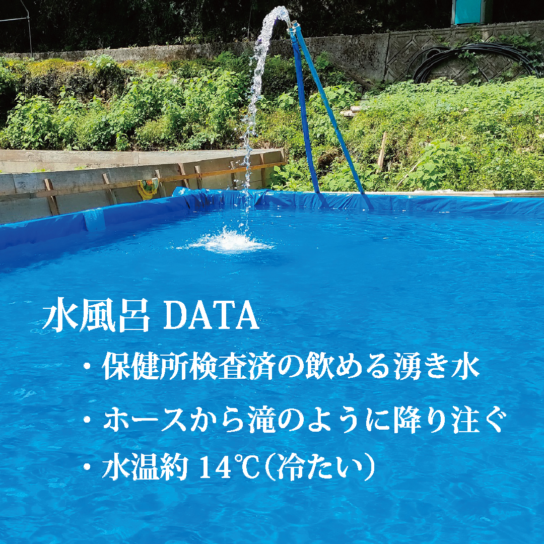 保健所検査お墨付きの「14℃の飲める天然水風呂」で、テントサウナで火照った身体を浮かべて冷やしてください♪