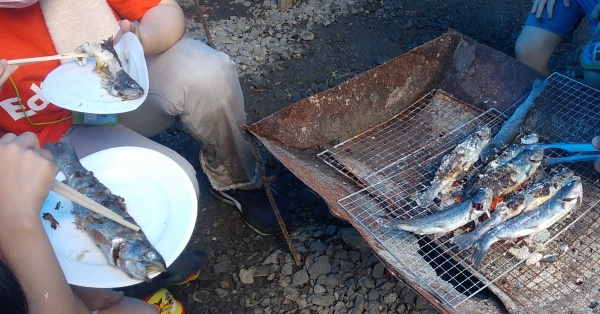 - 昼食は自由昼食になります。水辺公園でマスの塩焼きをご希望の方は、ご飯を用意しますので、イベント予約の際にお申し込みください。