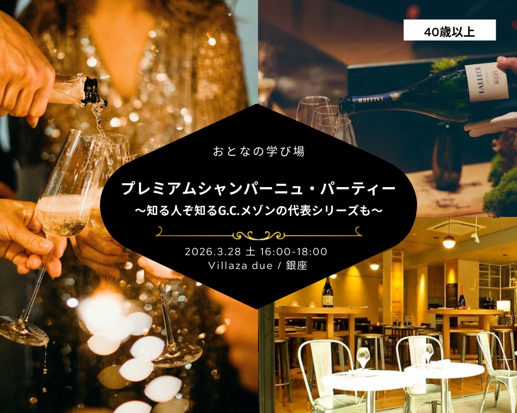 【3/28 銀座】新会場!おとなじかんのプレミアムシャンパーニュ・パーティー〜知る人ぞ知るG.C.メゾンの代表シリーズも〜