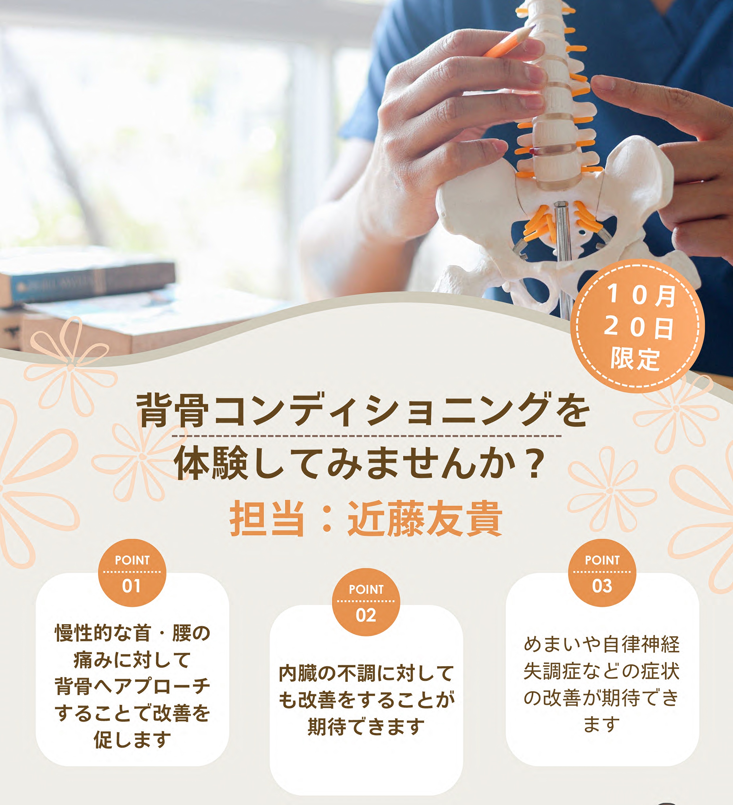 ポイント1:慢性的な首・腰の痛みに対して、背骨へアプローチすることで改善を促します。