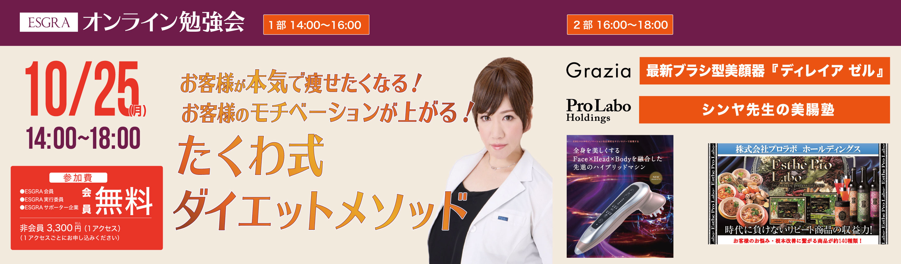 【1部】ESGRAオンライン勉強会 お客様が本気で痩せたくなる!お客様のモチベーションが上がる!たくわ式ダイエットメソッド