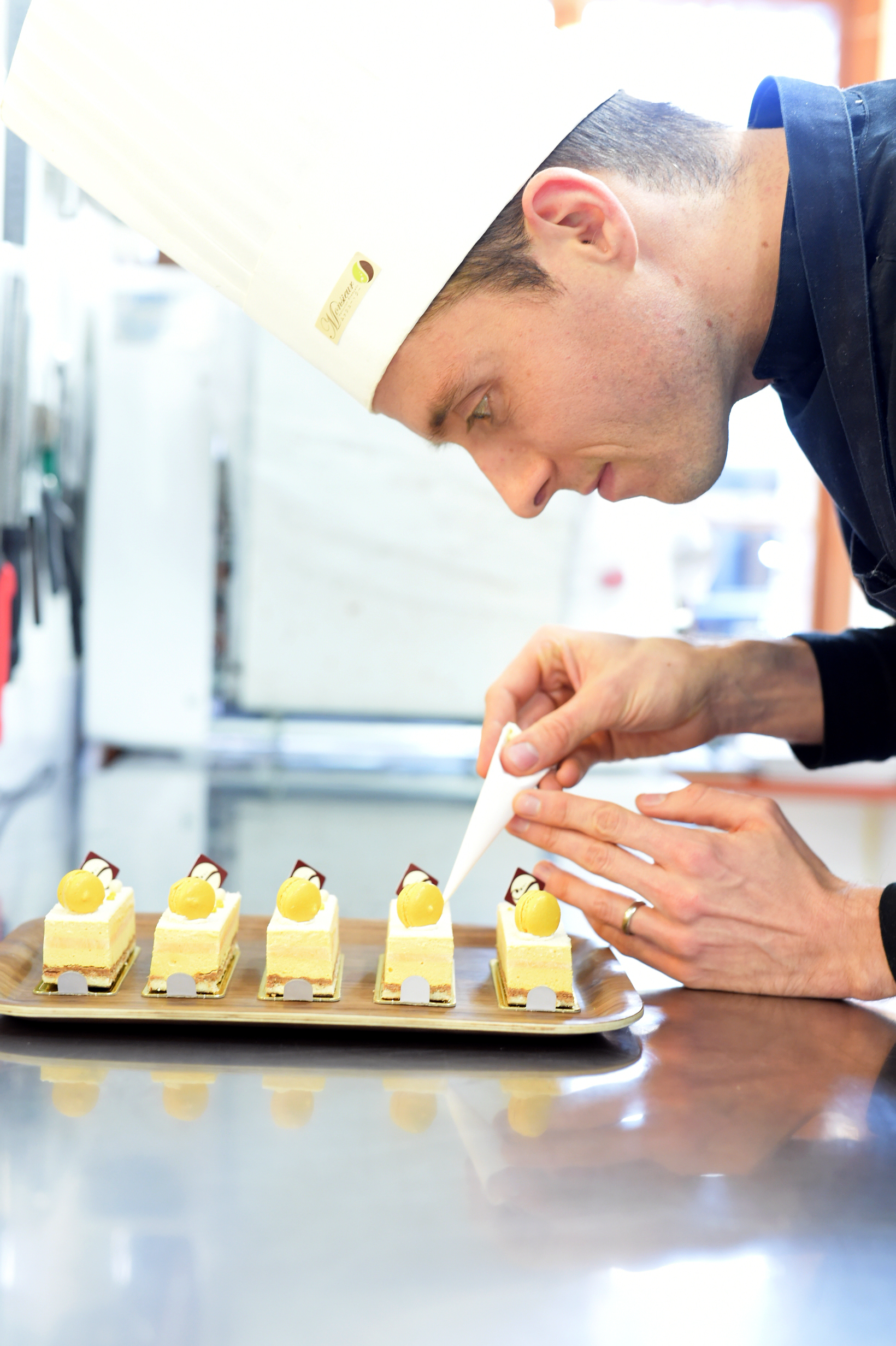 2013年に来日し、フランスのエスプリが感じられる商品は勿論のこと、日本の食材も研究し地場とのコラボレーションをテーマにした商品も手がける。香り高く口の中でとろけるケーキやマカロンは、世界でも評判を呼び、フランスの専門誌でも取り上げられている。