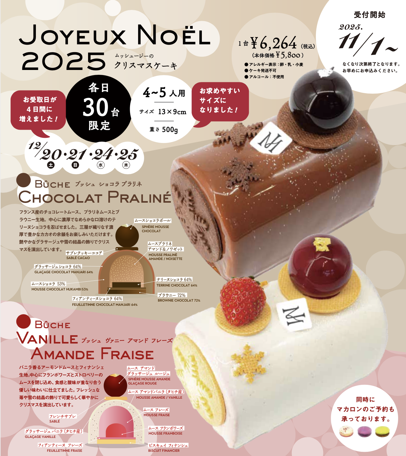 ※クリスマスケーキにはお誕生日割引チケットはご利用いただけませんので予めご了承ください。当日マカロン、焼き菓子などにはご利用可能です。