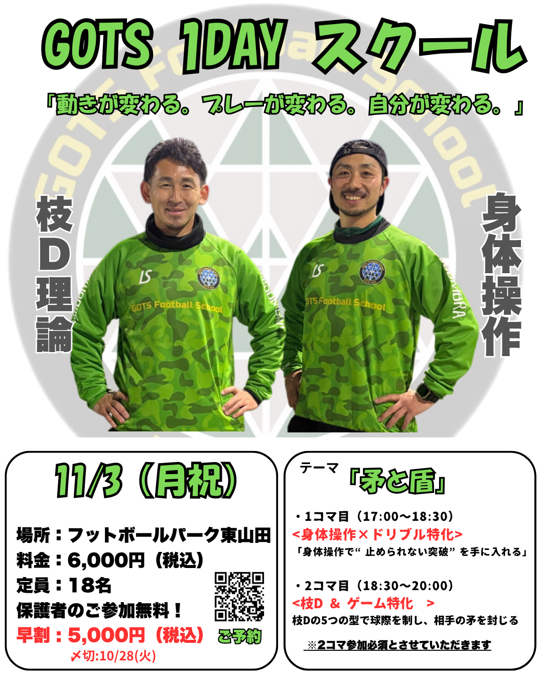 📢 11月3日(月・祝) 東山田会場にて「GOTS 1DAYスクール」を開催します!