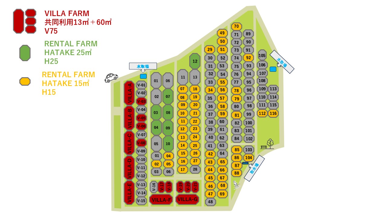 - ご利用区画・及び区画近隣は雑草などの管理を行ってください